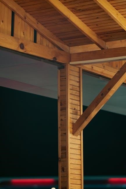 Free timber frame plans must provide comprehensive roof framing details‚ showcasing the intricate network of rafters‚ purlins‚ and ridge beams. Plans should clearly indicate timber sizes‚ spans‚ and connection methods‚ ensuring structural integrity under various load conditions – snow‚ wind‚ and live loads. Different roof styles‚ from gable to hip and mansard‚ require specific framing approaches.